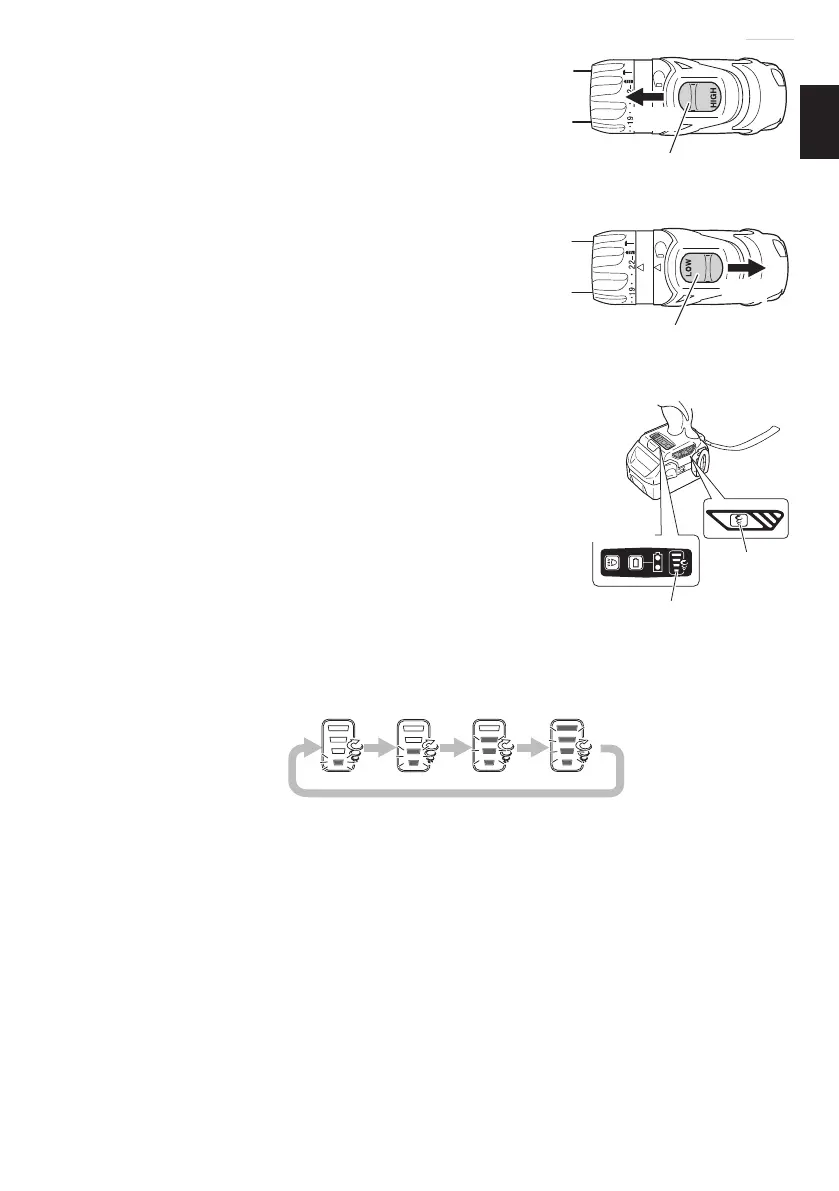 旋转 如果变速开关被设在“HIGH”位置,钻