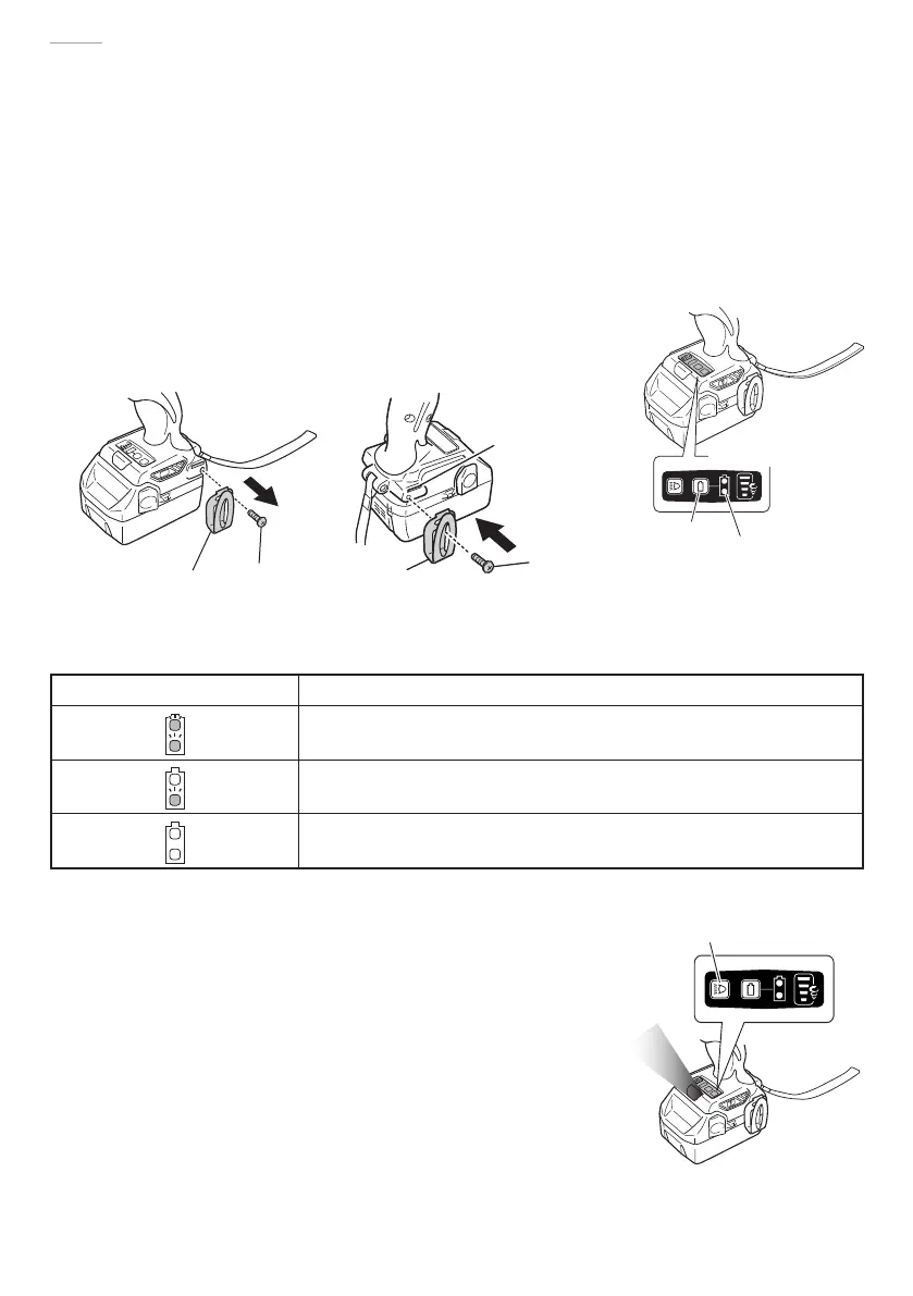 将手指从电池余量指示开关上放开后,电池余量指示灯会熄灭。电池余量指