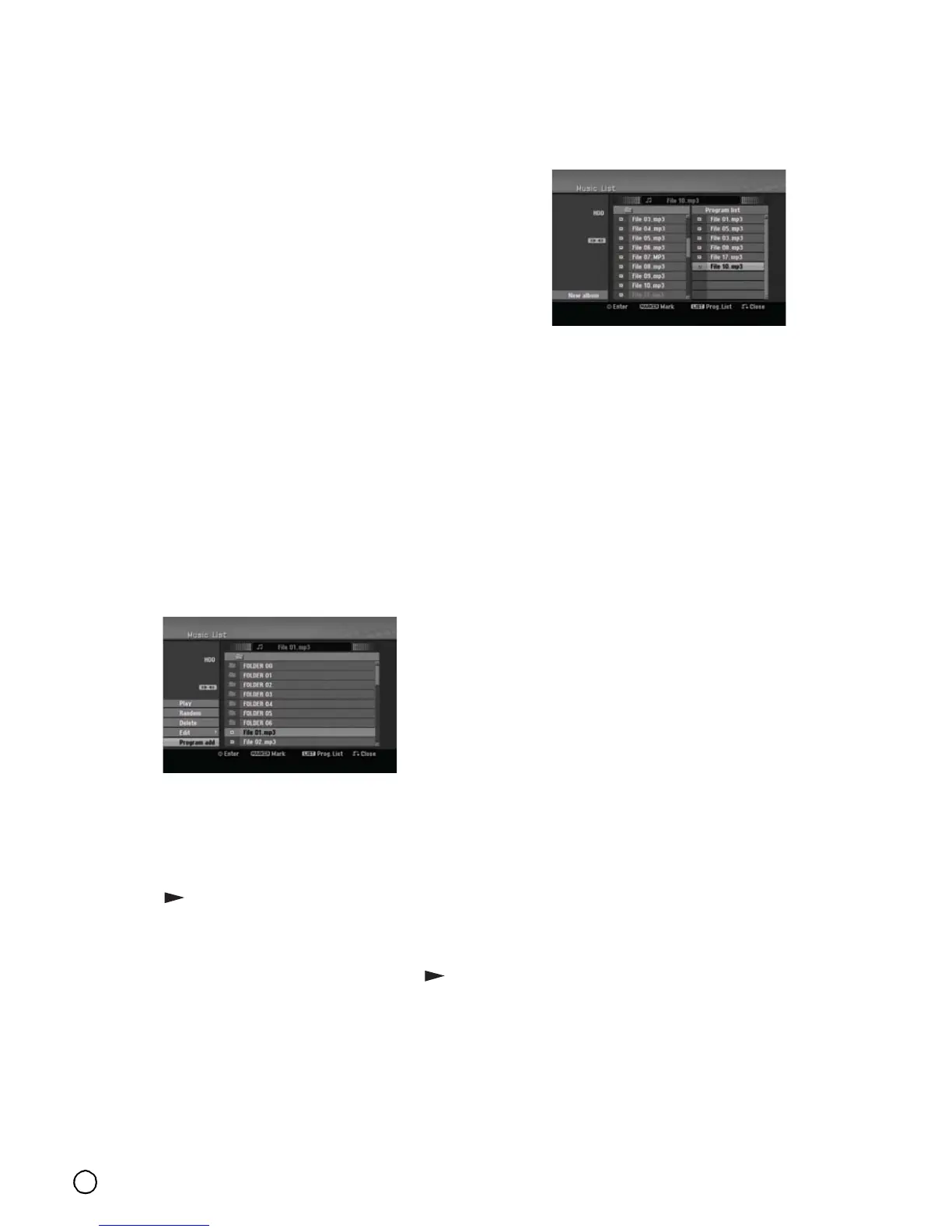 1. Press S / T to select a track/file on the Program
