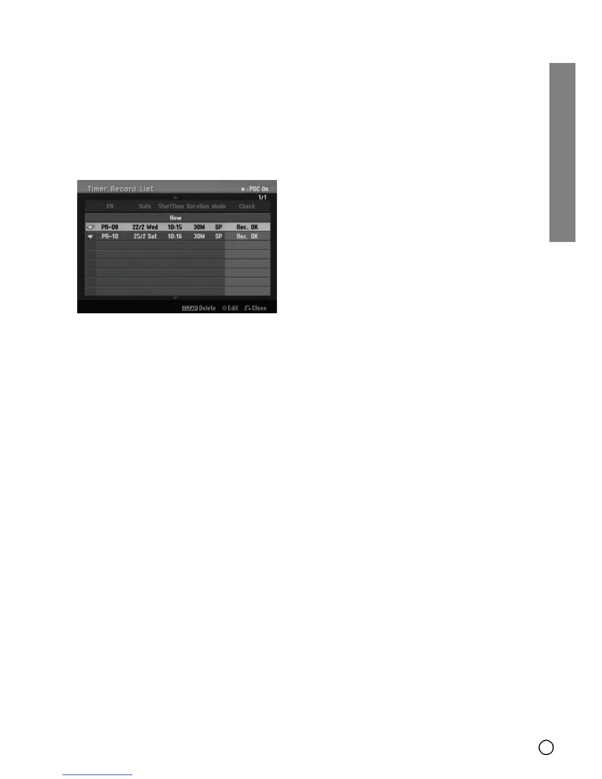 If a program is timer-recorded with PDC ON, “Rec. OK”