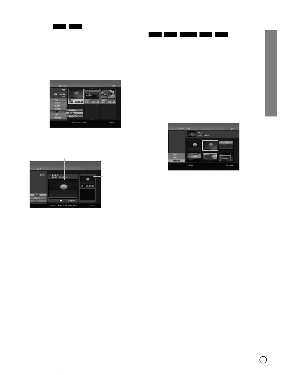 • If [Divide] is executed, the chapter in the title will be