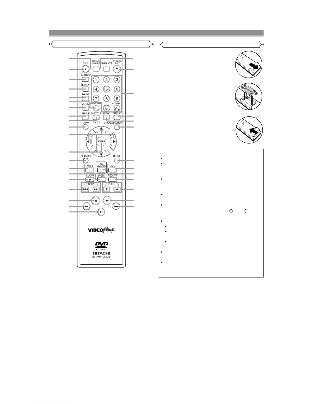 Use “AA” (R6P) batteries in this remote control unit.