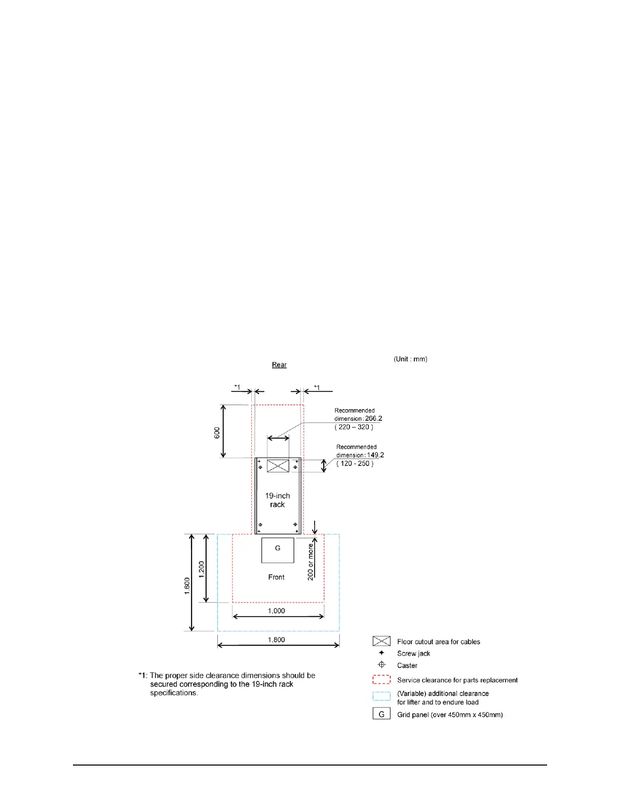 Additional space required to view the storage system LEDs on the front and rear panels.