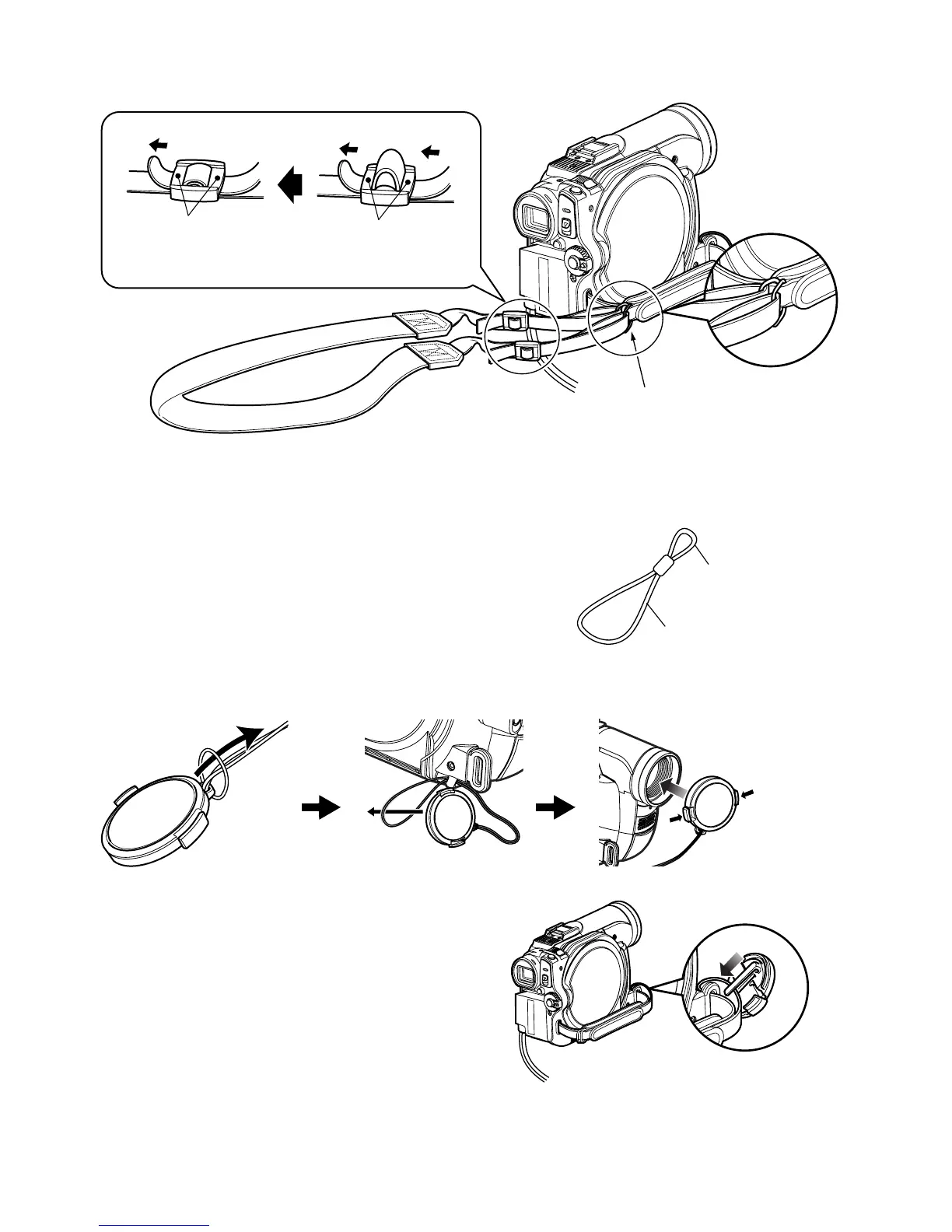 1 Attach the shorter end of lens cap string to