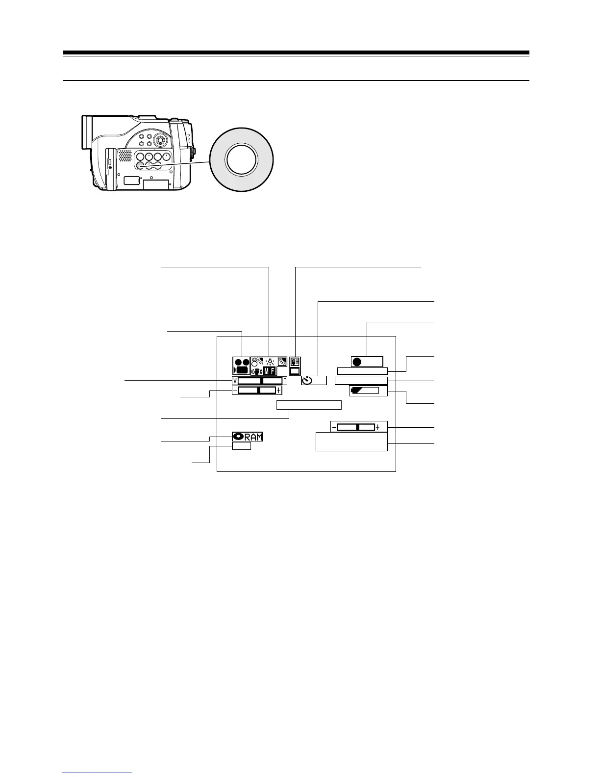 Various types of information will appear in the viewfinder or on the LCD screen during recording.