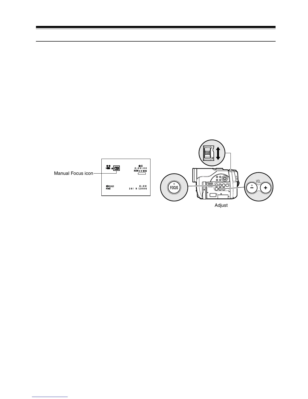 • Pressing FOCUS will alternate between manual focus