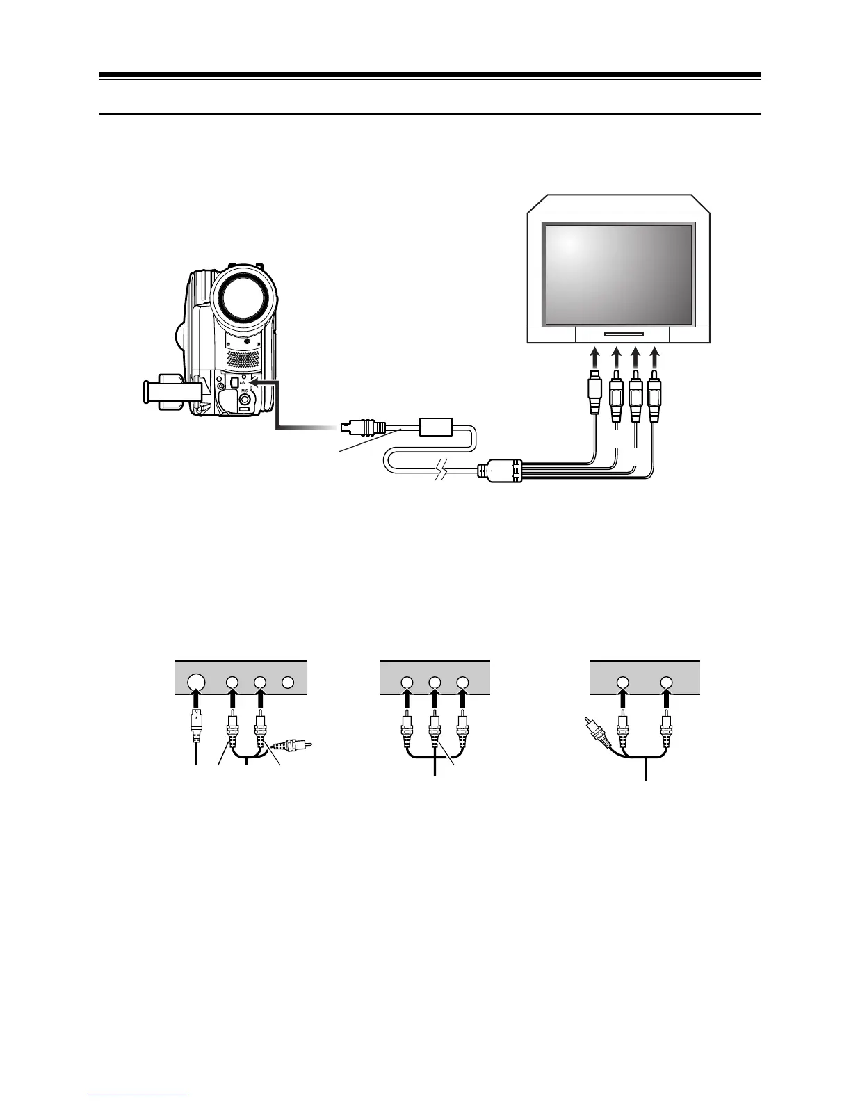 Use the provided AV/S output cable to connect the DVD video camera/recorder to a TV as follows: