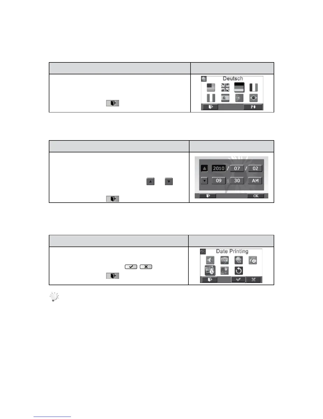 In the Setting menu, touch the [Date Printing] 1. icon on the
