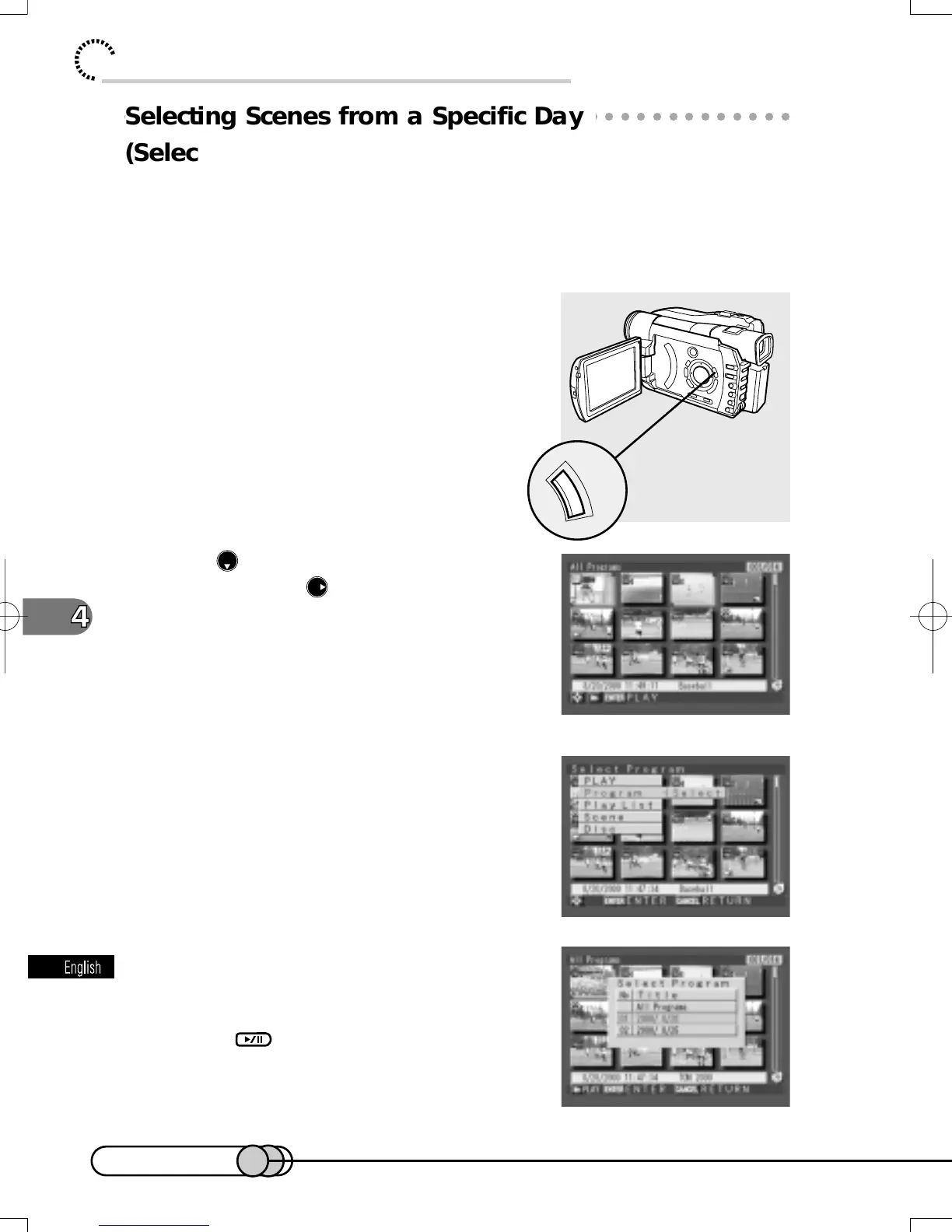 a specific day to be edited. The scenes recorded on this DVD camera/recorder are