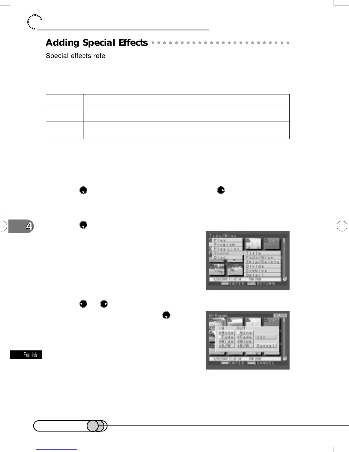 3. Press to choose “Fade/Wipe”, and then press the ENTER but-