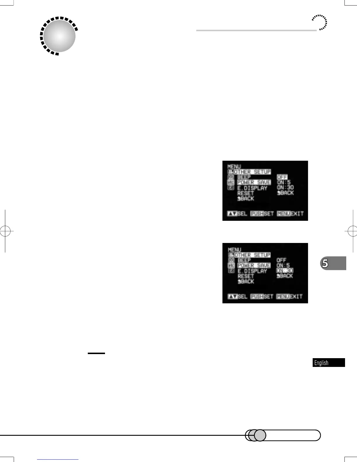 If you use the OTHER SETUP menu screen to specify “POWER SAVE ON:5”, and
