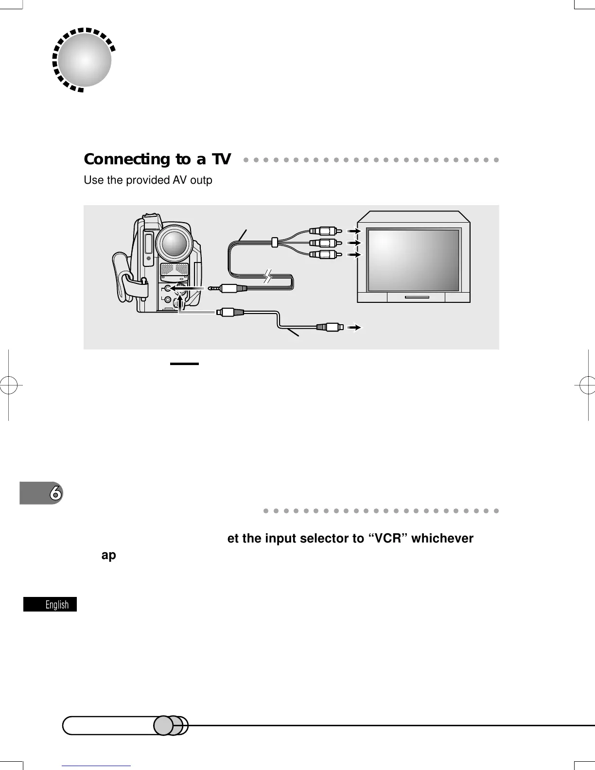 1. Turn the TV on and set the input selector to “VCR” whichever