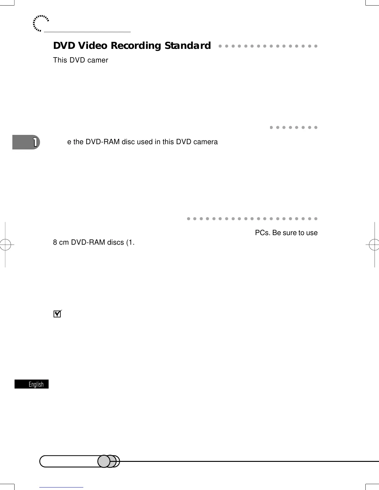 This DVD camera/recorder conforms to the DVD video recording standard. The