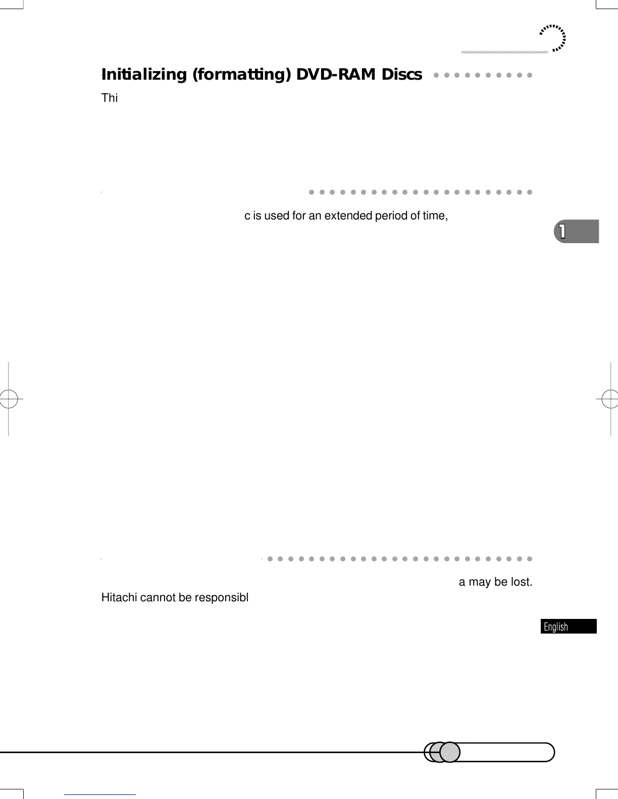 Hitachi cannot be responsible for damages from loss of recorded data.