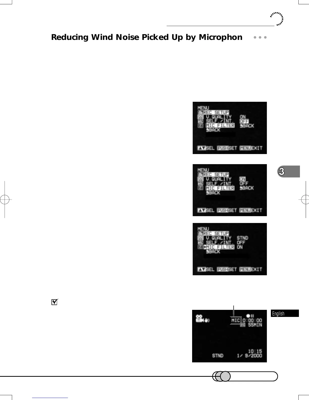 by reviewing on-screen information: MIC will appear