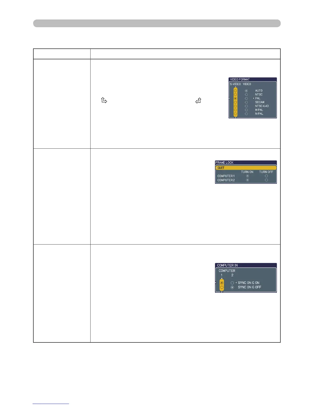 Selecting SYNC ON G ON allows reception of sync on G signal.
