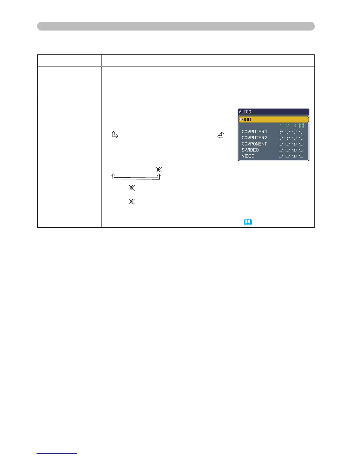 • When is selected for an input, the audio will not be output if the