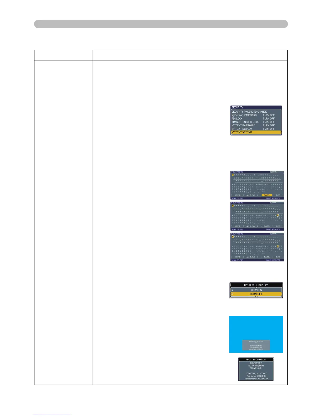• This function is available only when the MY TEXT