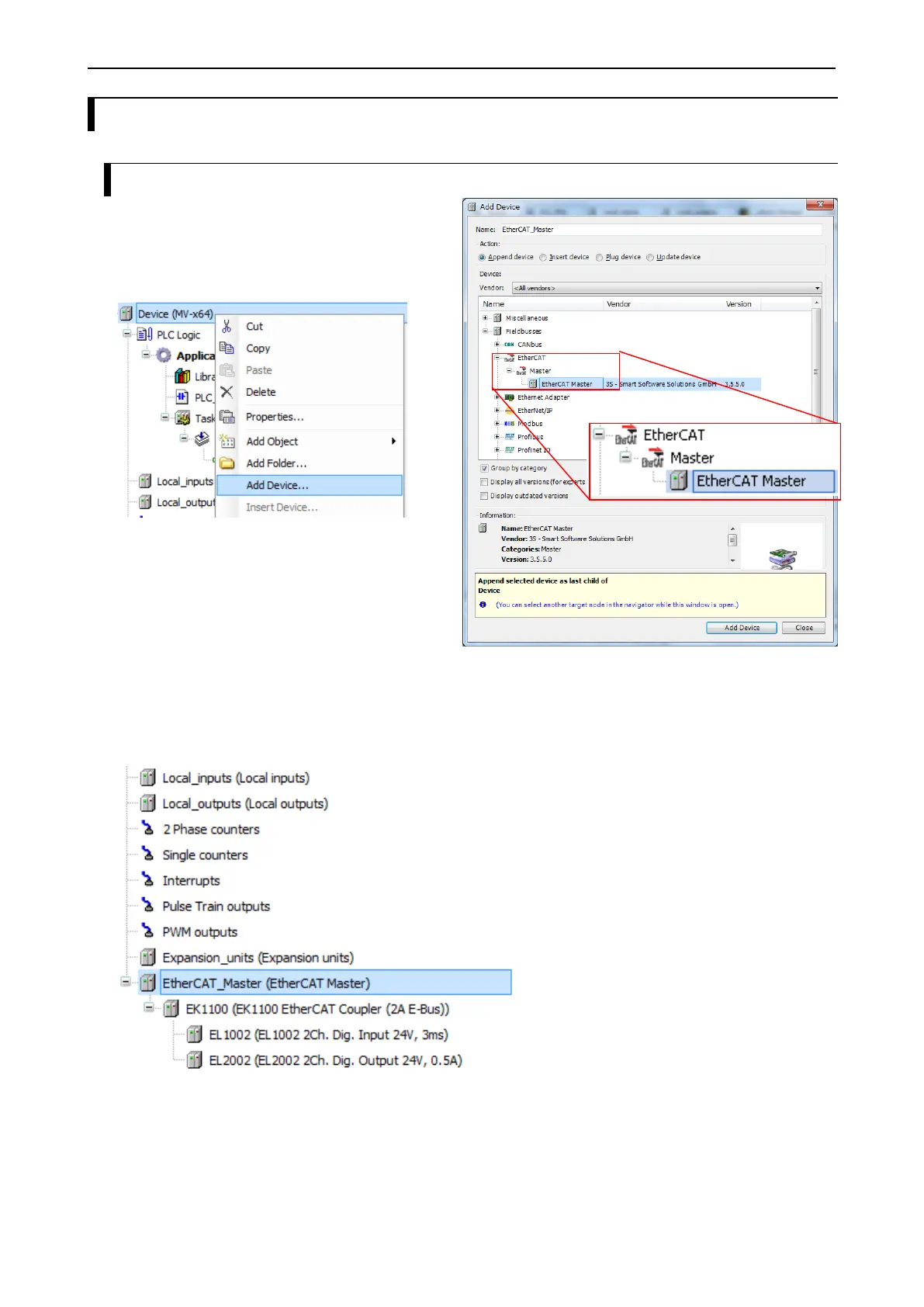 With “Add device” window opened, click “EtherCAT_Master” in the device tree. Then available devices will be