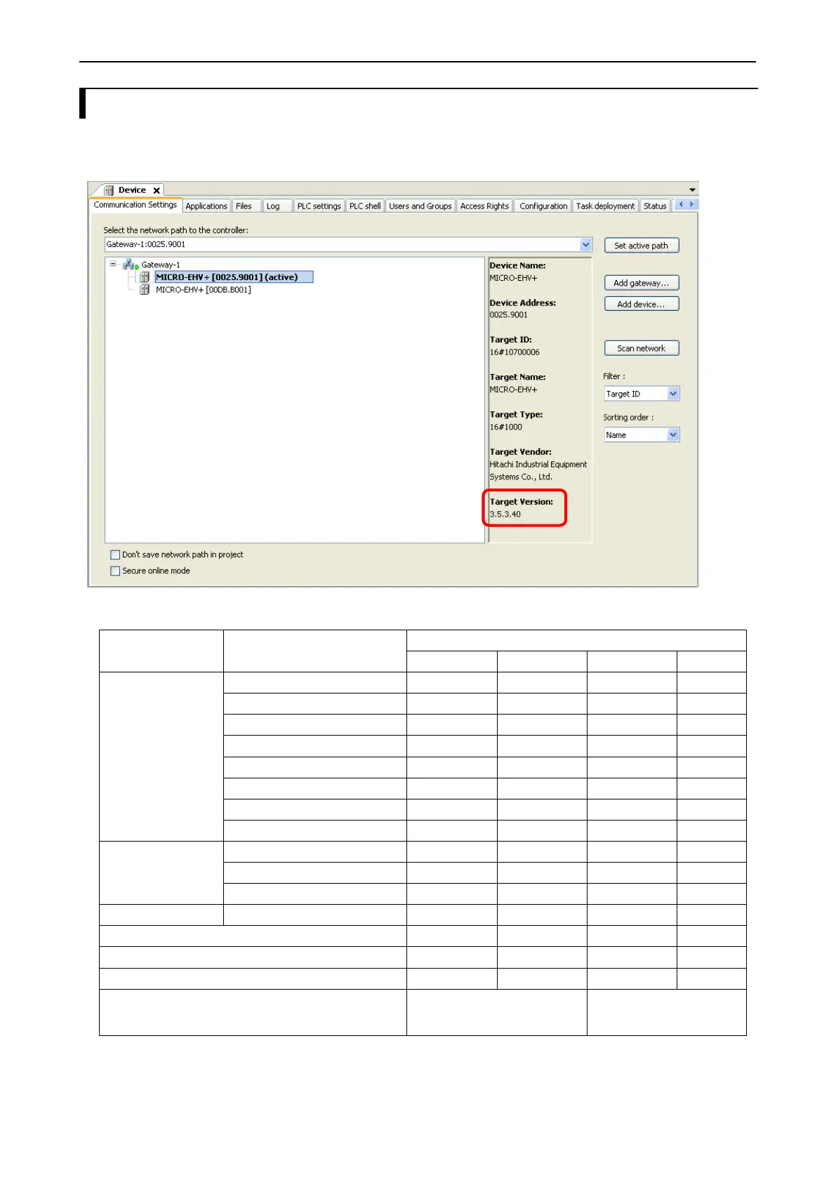 Firmware version (Target-Version) of your CPU is monitored in communication settings of Device as below.