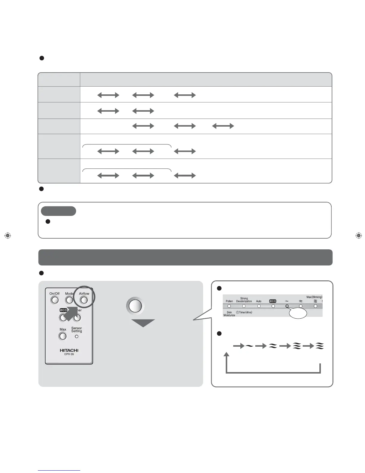 When “Auto” is lit, the following airflow rate is used according to the selected operation mode.