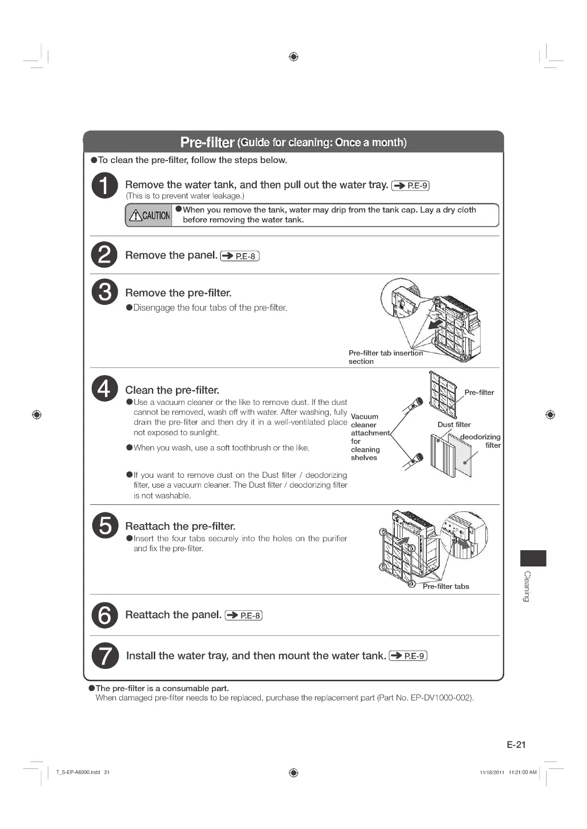 Hitachi EP-A6000 - Cleaning Procedures (Continued); Monthly Purifier Body and Sensor Cleaning; Dust Sensor Cleaning Schedule