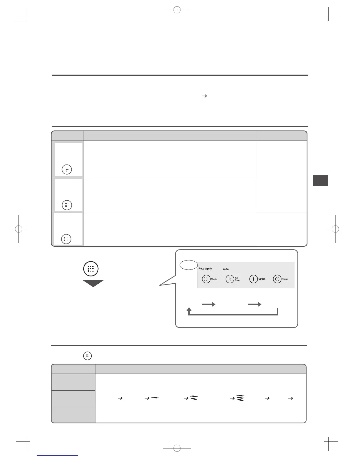 Switching the operation mode will set the airfl ow to “Auto”.