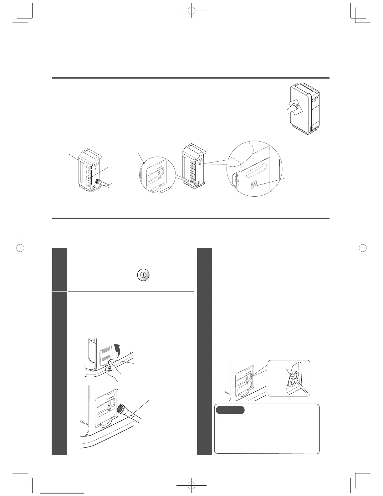 Remove dust from the surfaces of the rear panel air inlet, dust sensor, odor sensor, tempera-