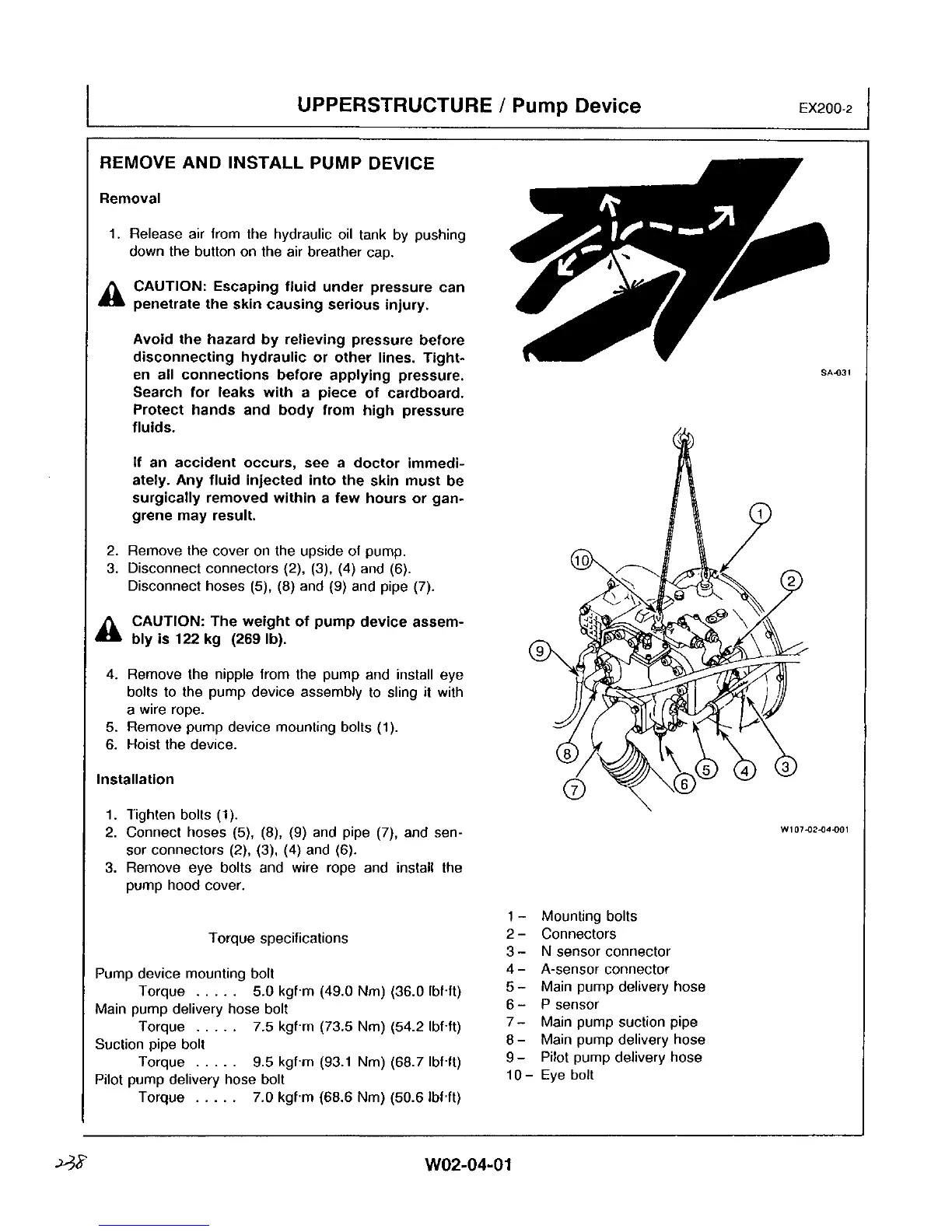 Hitachi EX200-2 - Pump Device Removal and Installation