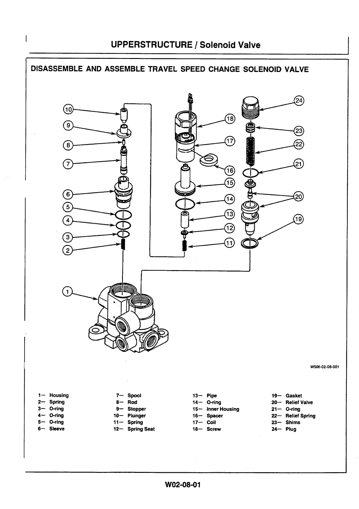 Hitachi EX40UR-2 - Group 08 SOLENOID VALVE; DISASSEMBLE AND ASSEMBLE TRAVEL SPEED CHANGE SOLENOID VALVE