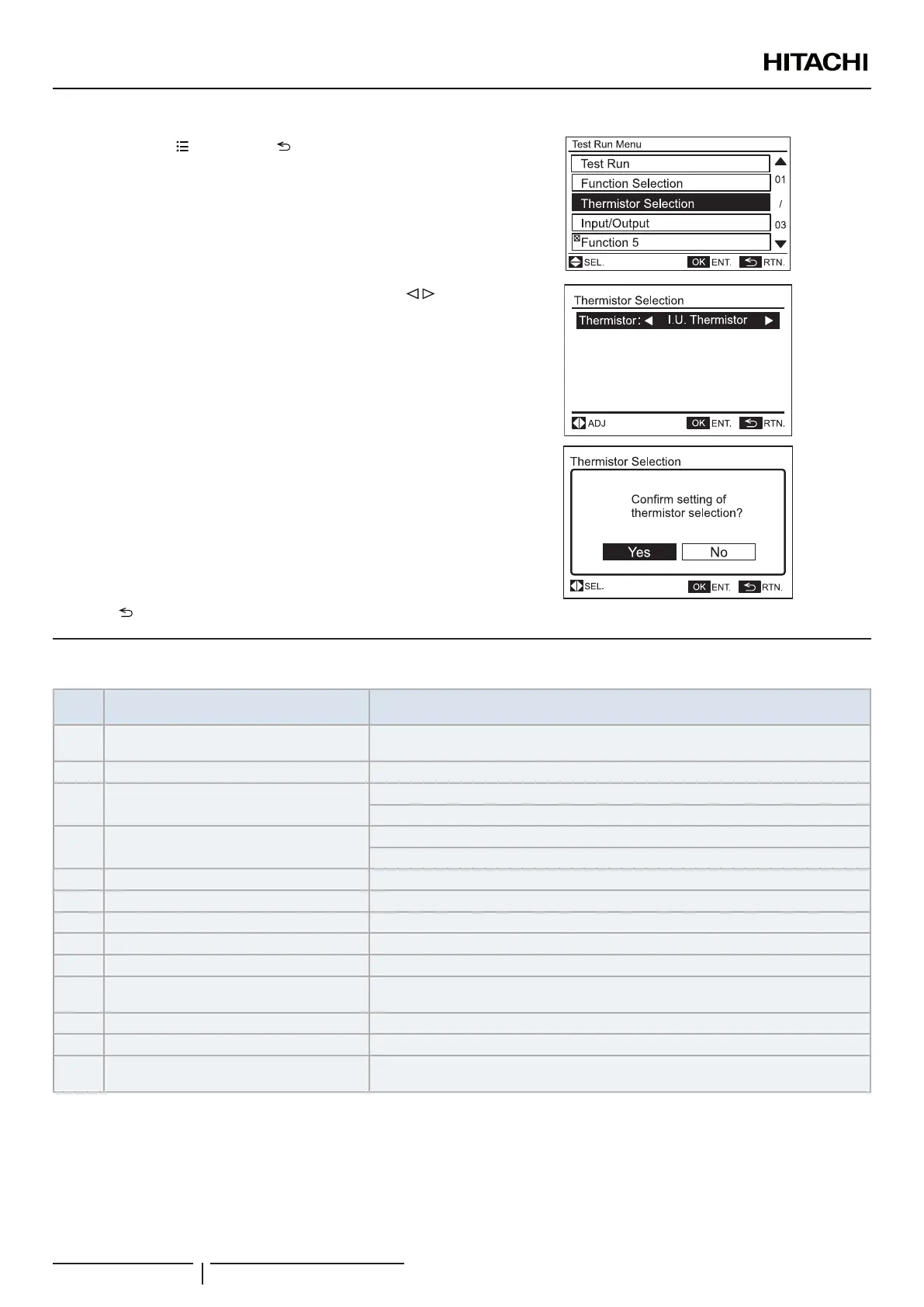 2 Select “Thermistor Selection” from the test run menu and press