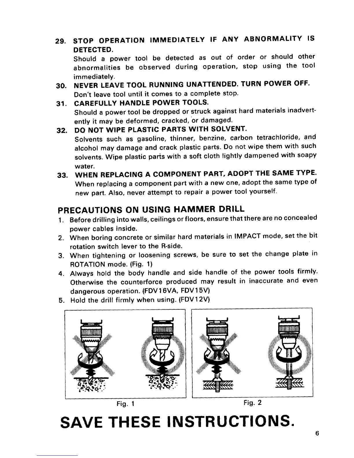 Hitachi FDV 16VA - Precautions on Using Hammer Drill