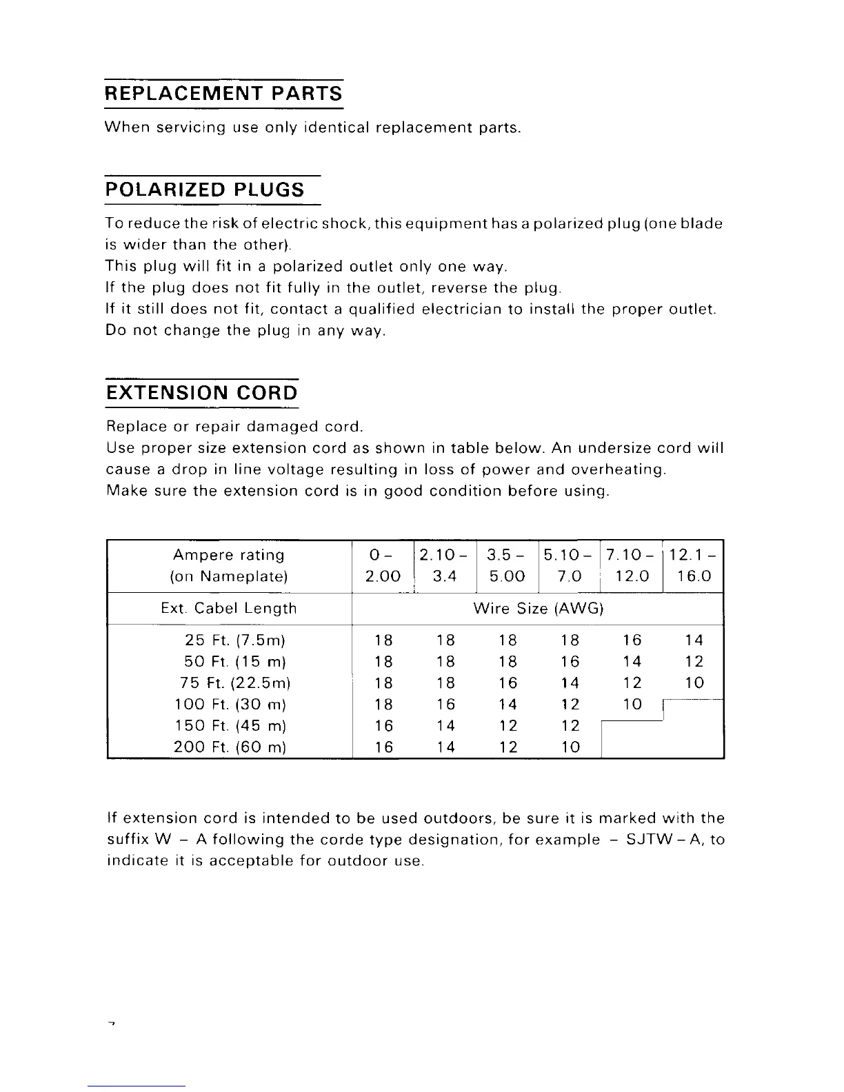 Hitachi FDV 16VA - Polarized Plugs; Extension Cord