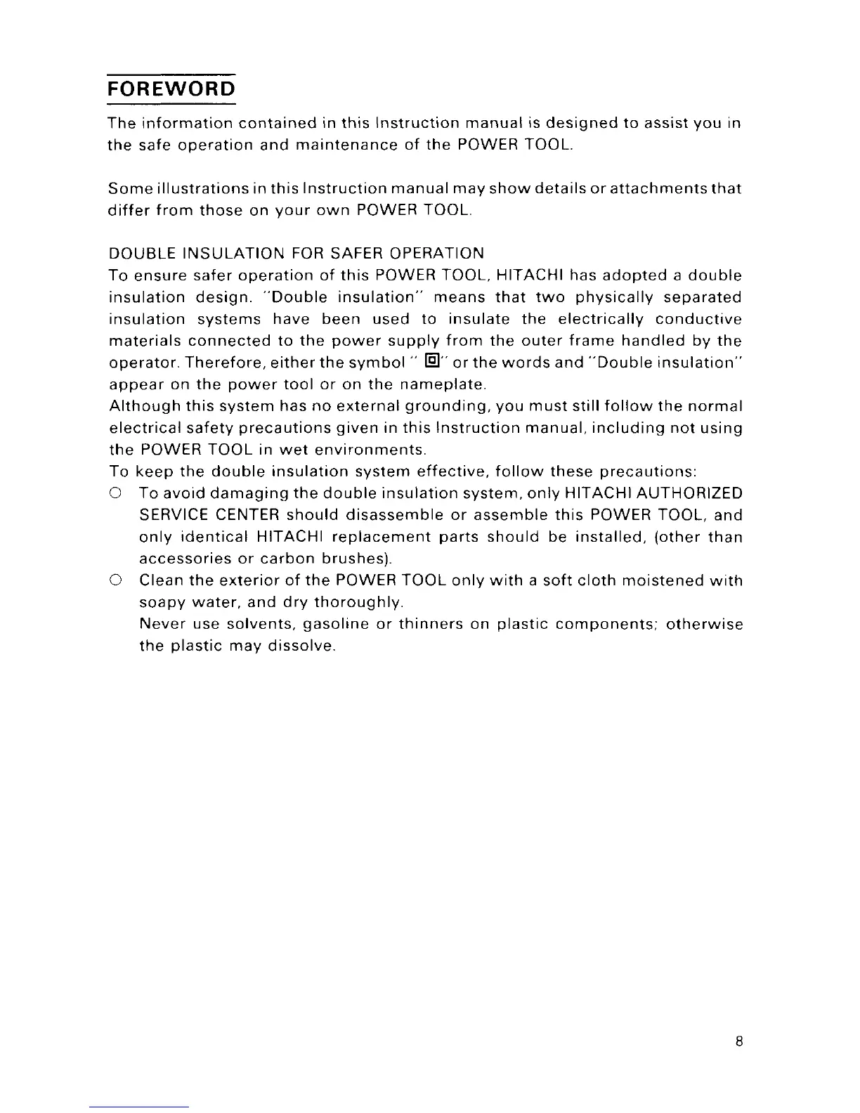 Hitachi FDV 16VA - Parts and Specifications Overview; Name of Parts; Specifications