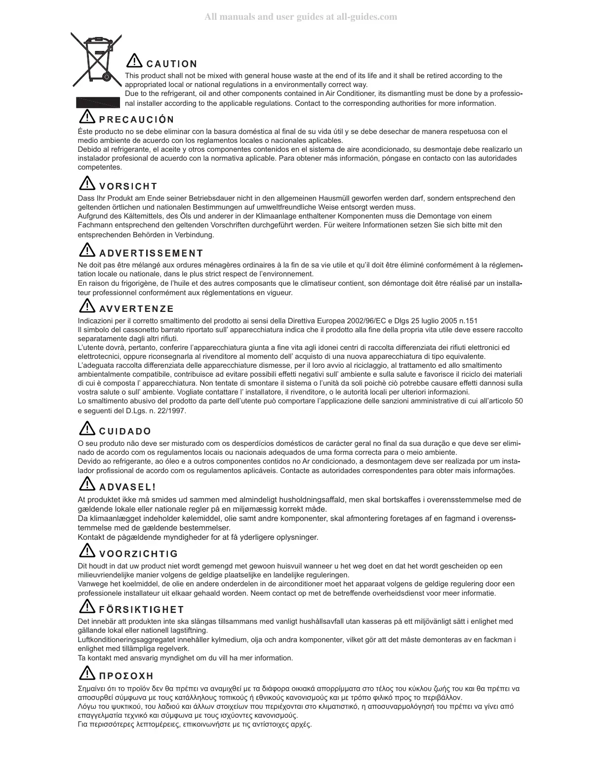 'XHWRWKHUHIULJHUDQWRLODQGRWKHUFRPSRQHQWVFRQWDLQHGLQ$LU&RQGLWLRQHULWVGLVPDQWOLQJPXVWEHGRQHE\DSURIHVVLR