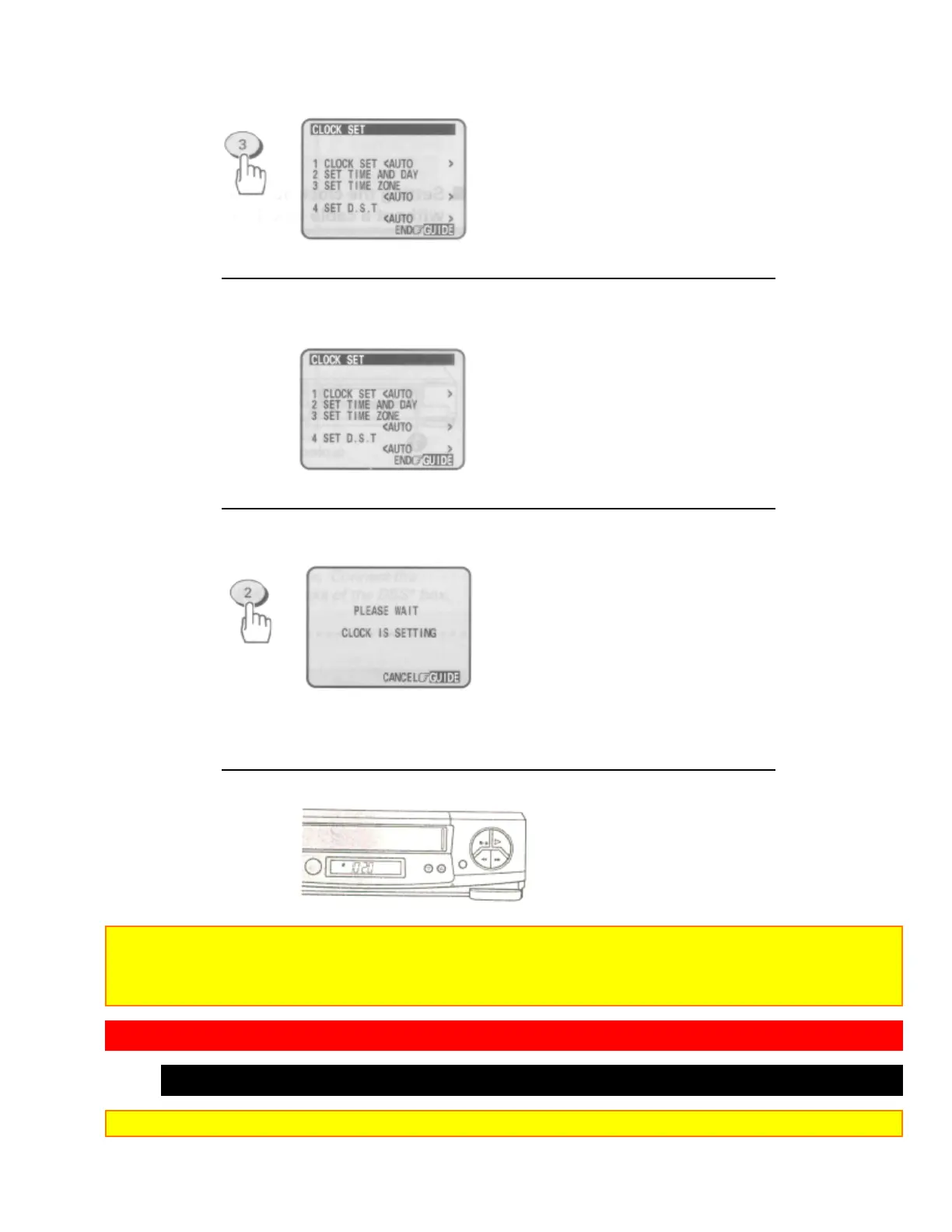 4 Make sure that item 1 is highlighted "CLOCK SET <AUTO>".