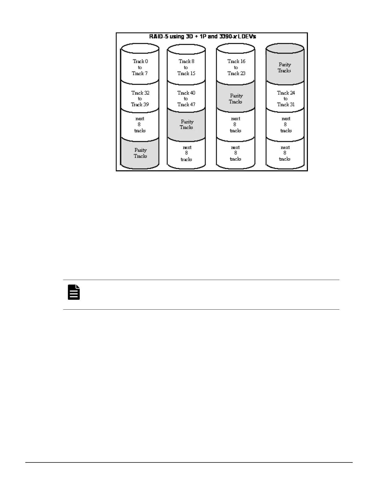 Figure 11 Sample RAID 5 3D + 1P Layout (Data Plus Parity Stripe)