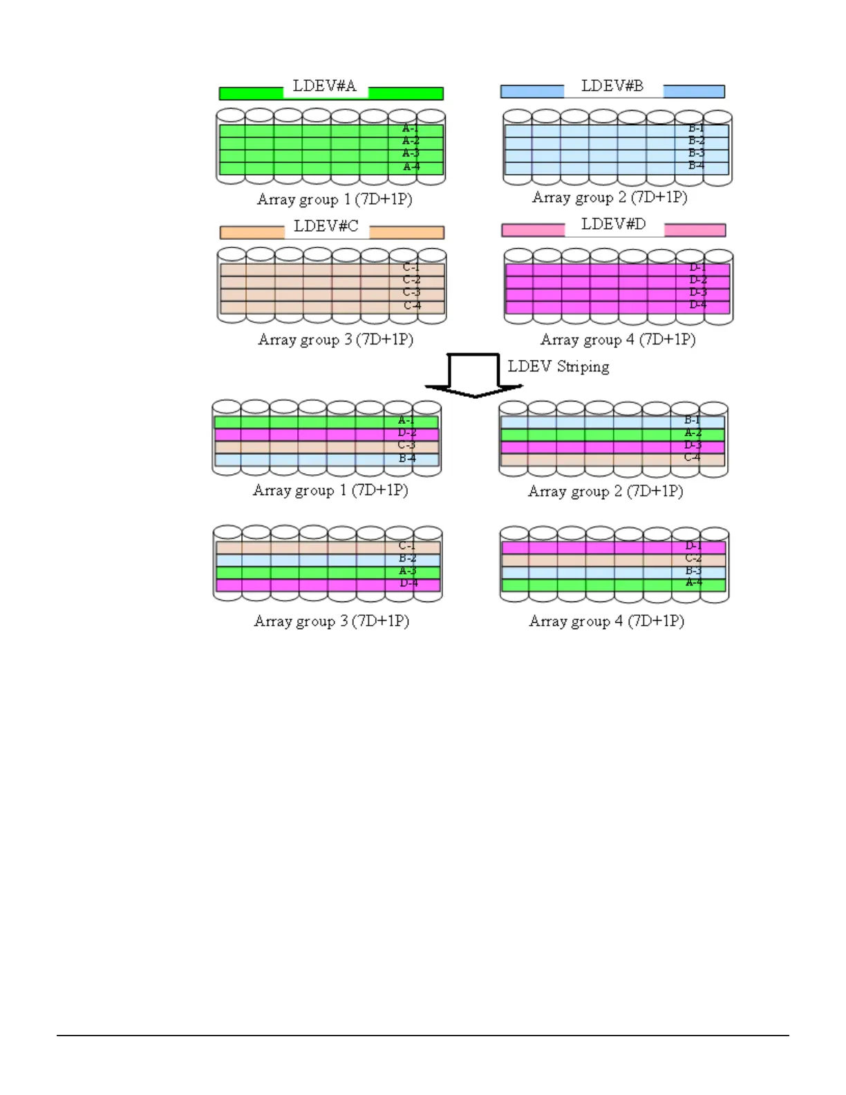 Figure 13 LDEV Striping Across 4 RAID5 (7D+1P) Array Groups