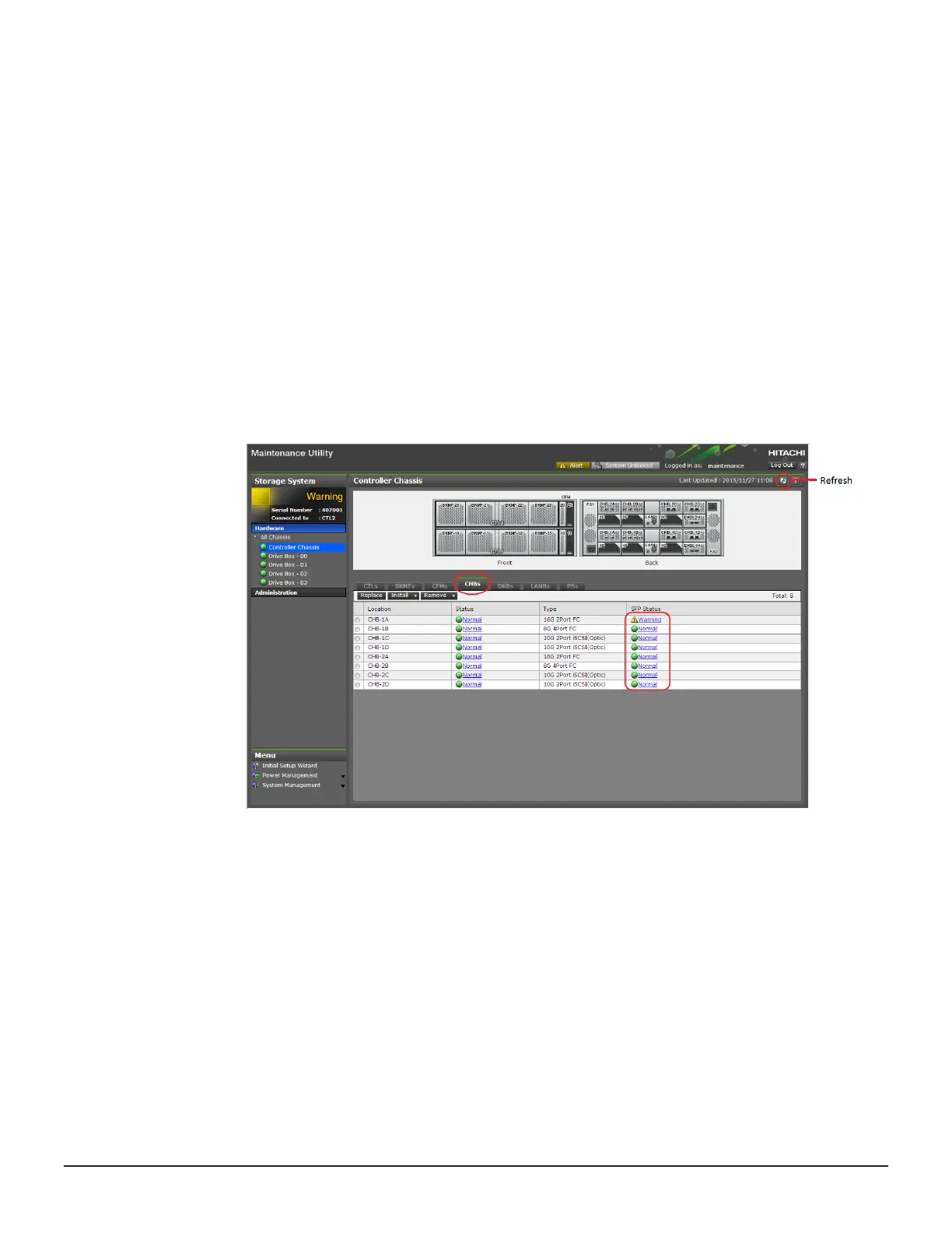 4. Confirm that the status of the SFP to be replaced is Warning.