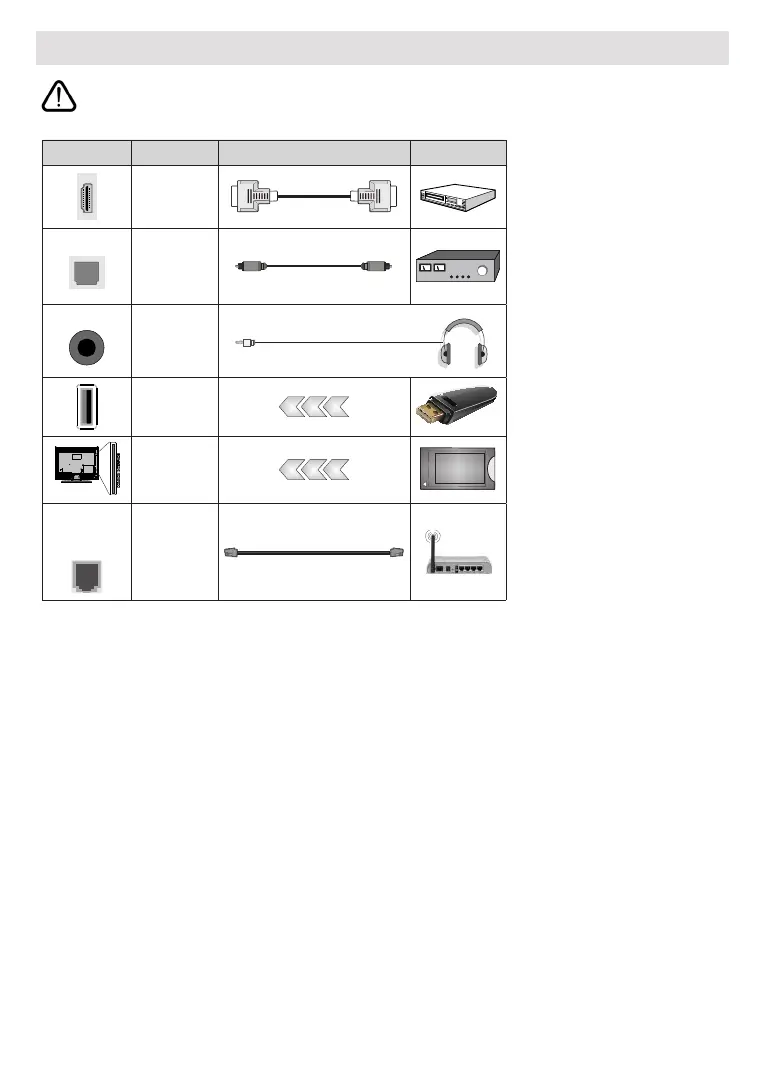 Si vous souhaitez connecter un appareil au téléviseur, assurez-vous que le téléviseur et l’appareil sont hors tension