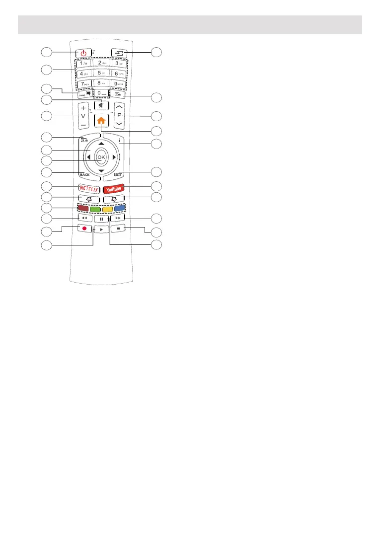 Számgombok: Live TV módban csatornát vált, a