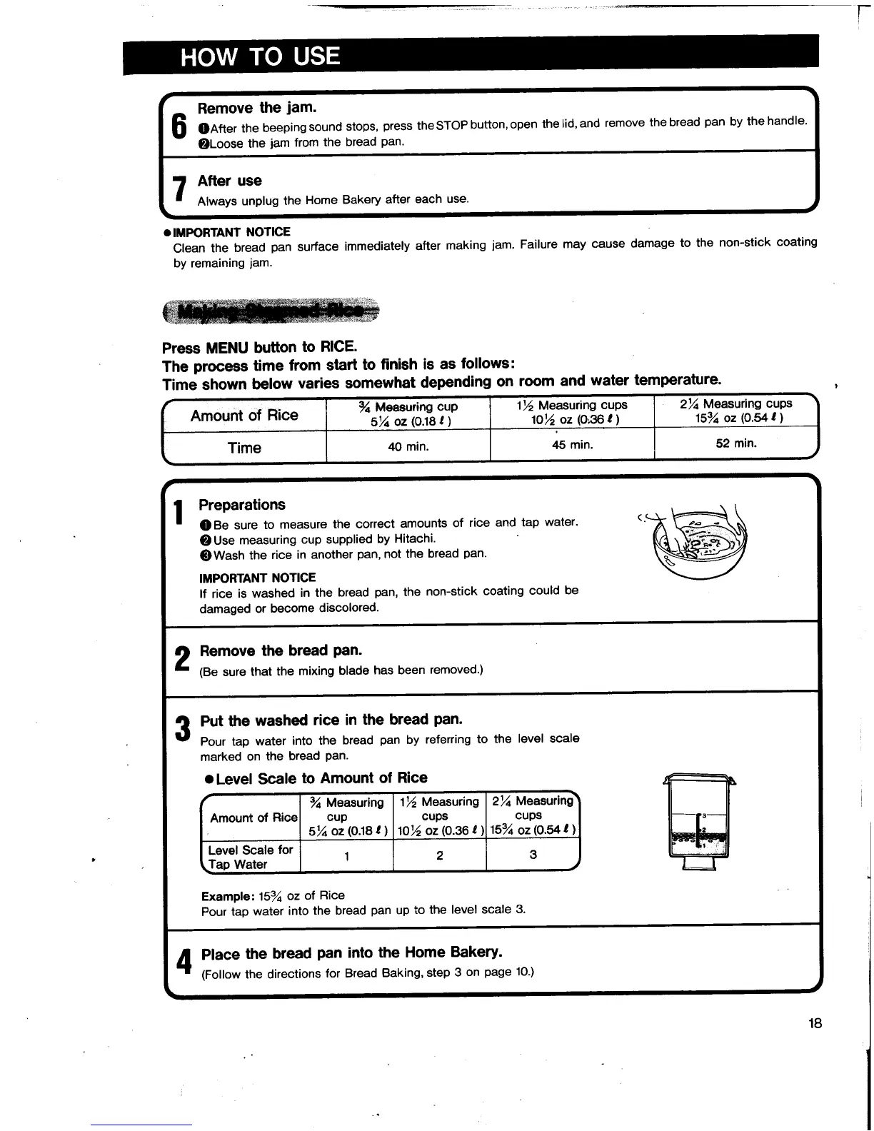 Hitachi HB-B201 - How to Use: Rice Cooking Completion; Rice Cooking Procedure and Aftercare