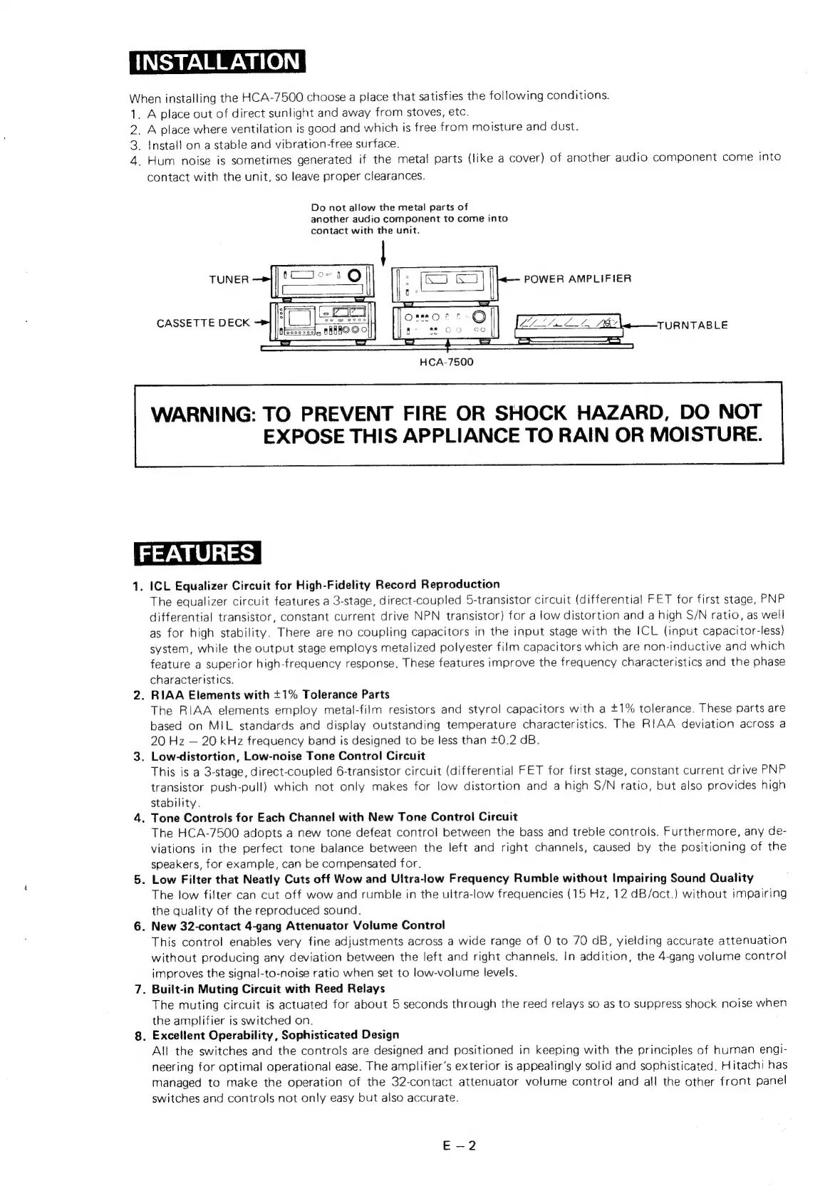 Hitachi HCA-7500 - Installation Guide; Product Features