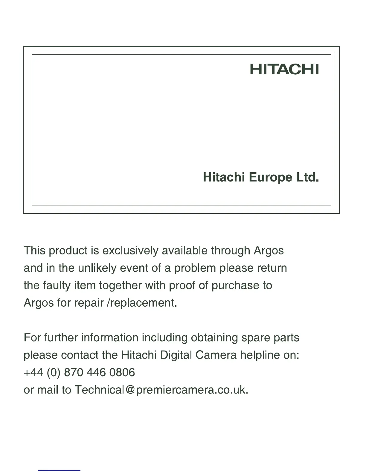Hitachi HDC-761E - Warranty Information; Hitachi HDC-761 E Warranty Details