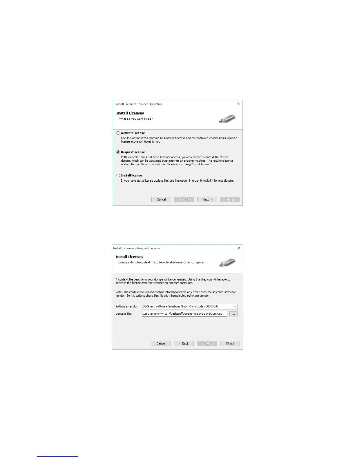 used in license activation. Specify the Software vendor and the file save location, and