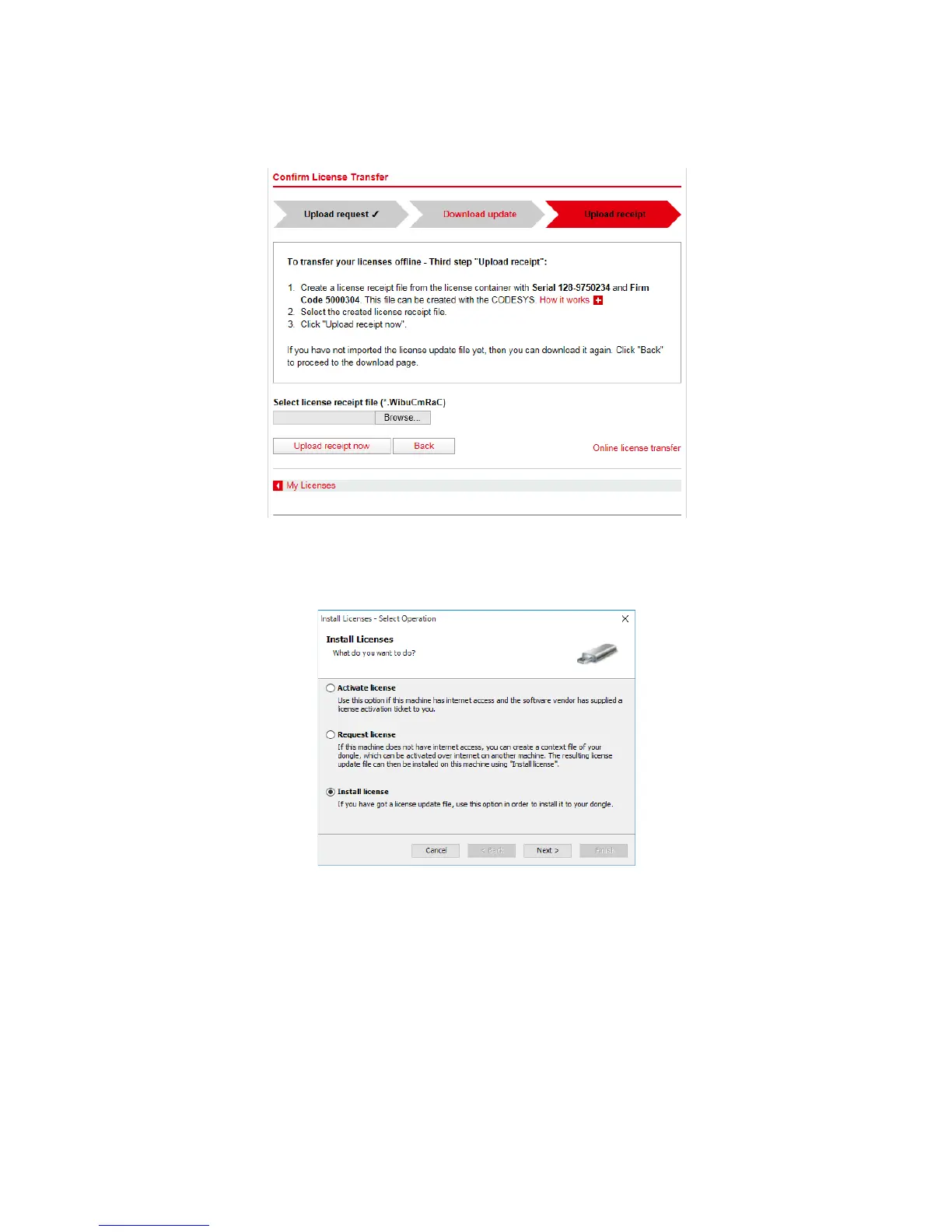 11. In the Select Operation window of HF-W100E/IoT, select Install license, and then