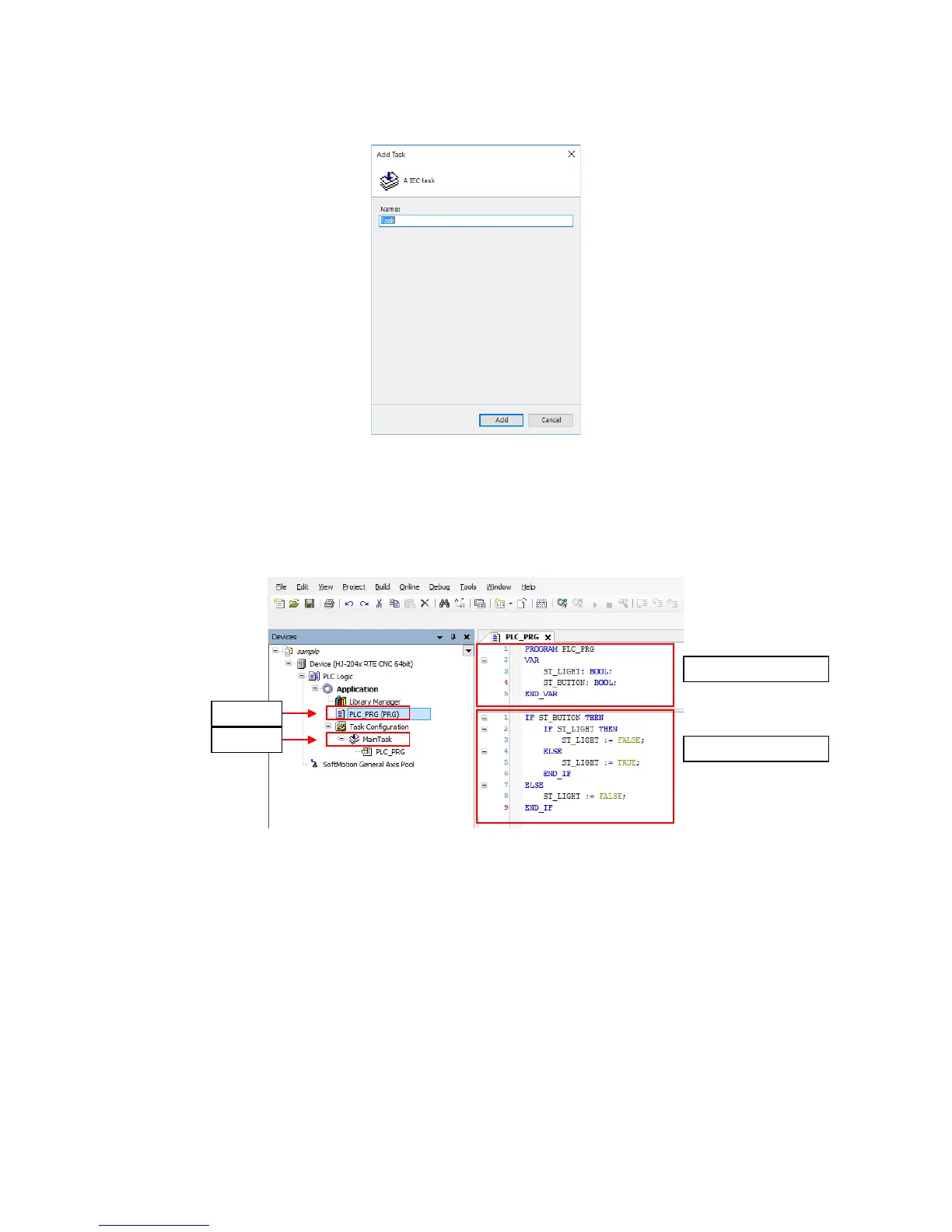 creating a program. You can create a program in the PLC_PRG tab. In the declaration
