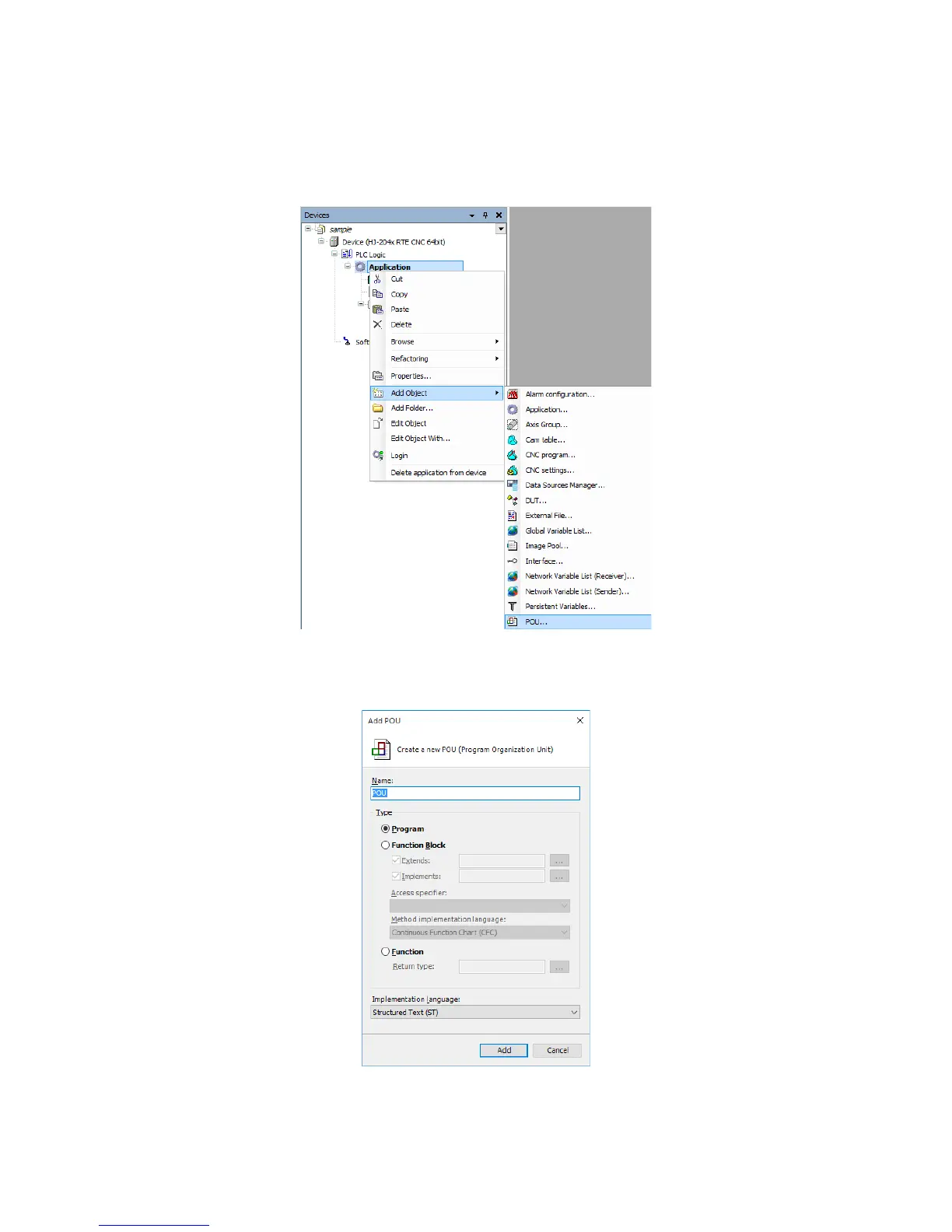 1. In the right-click menu on Application in the Devices window, click Add Object >