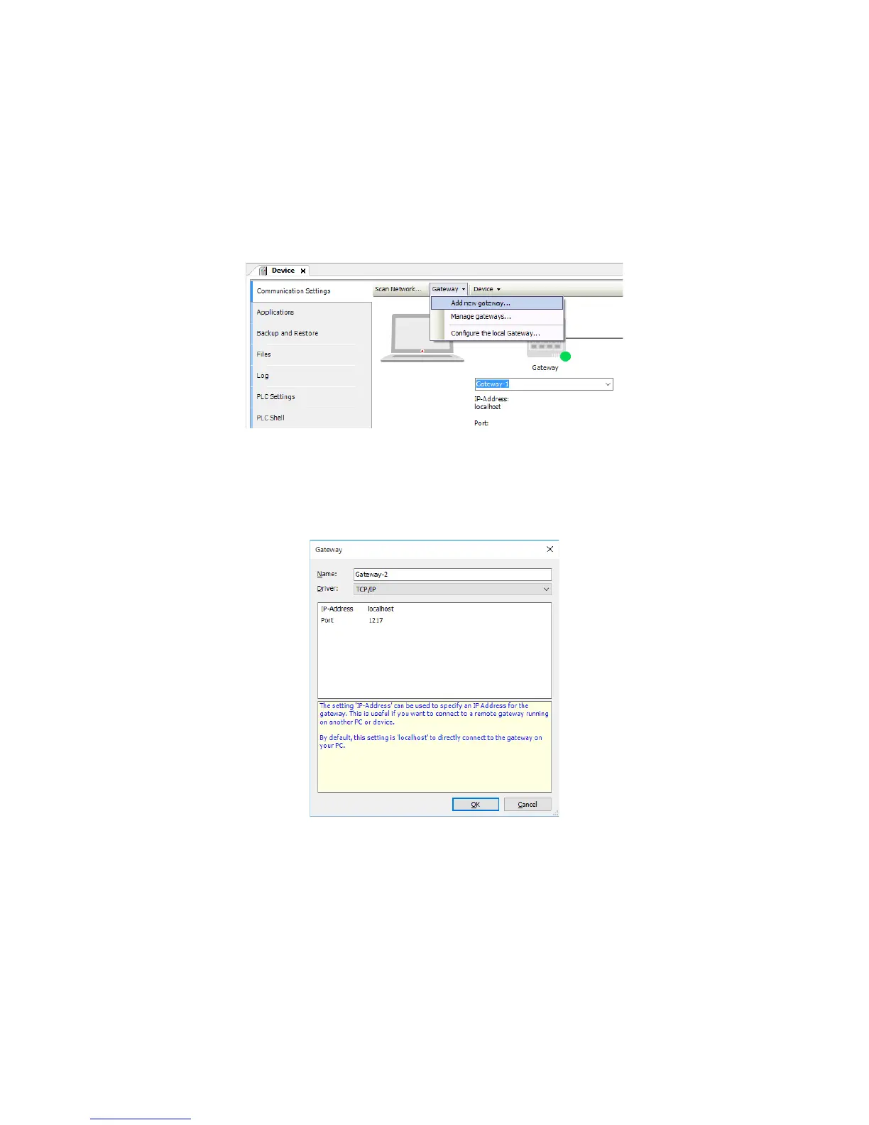 2. In the Communication Settings window, click Gateway. On the menu, click Add