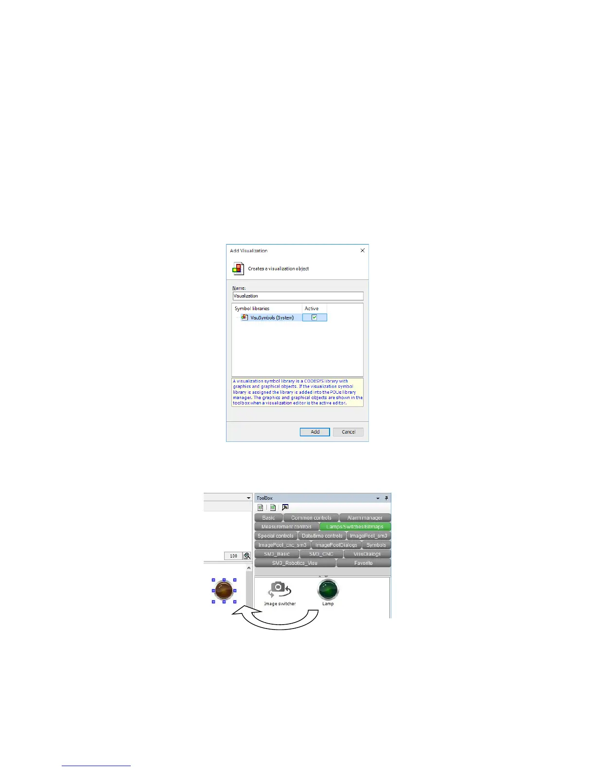 This section shows how to add and run a typical visualization object, Lamp.